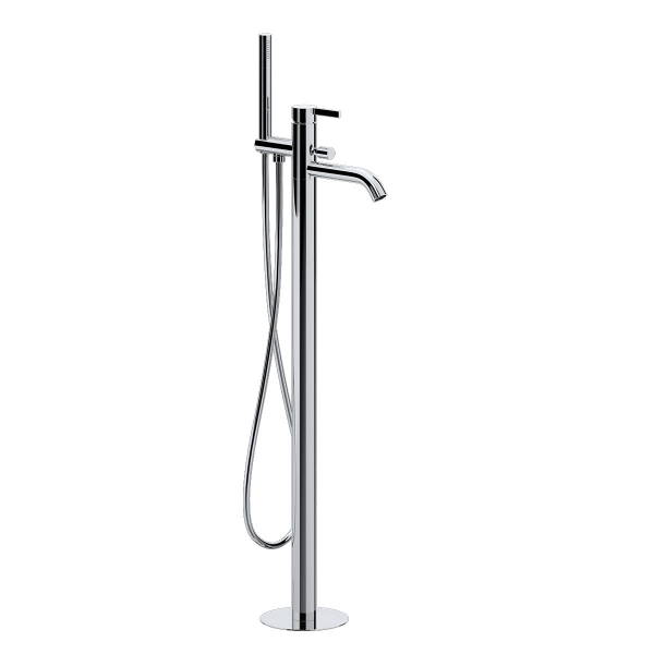 Miscelatore monocomando vasca da pavimento, con deviatore e kit doccia, doccetta in ottone.