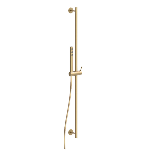 Saliscendi per doccia con asta in acciaio inox 316L DM.18 mm con doccetta inacciaio inox 316L monogetto anticalcare, flessibile in acciaio inox 1600 mm H.96 cm.