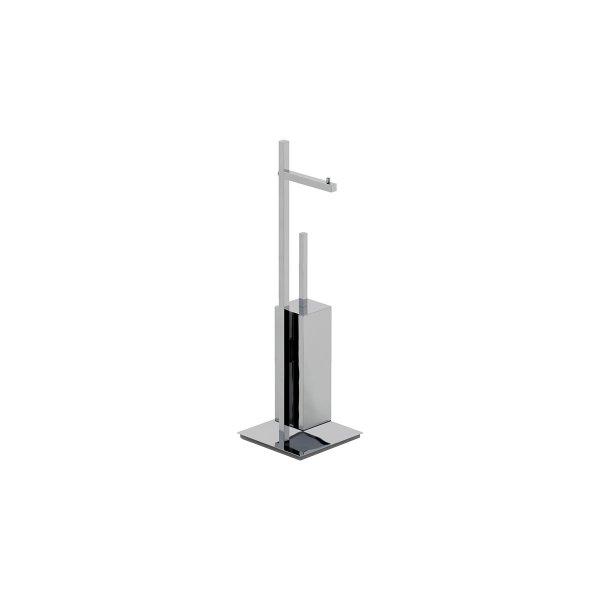 Piantana porta scopino e porta rotolo in Ottone.Misure: L. 22,5 x H. 63 - base 18x18