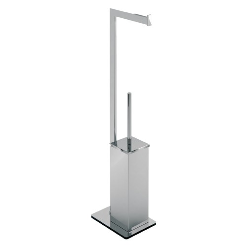 Piantana portascopino e porta rotolo in acciaio Misure: H. 64 x L. 20 (Base 18x20)