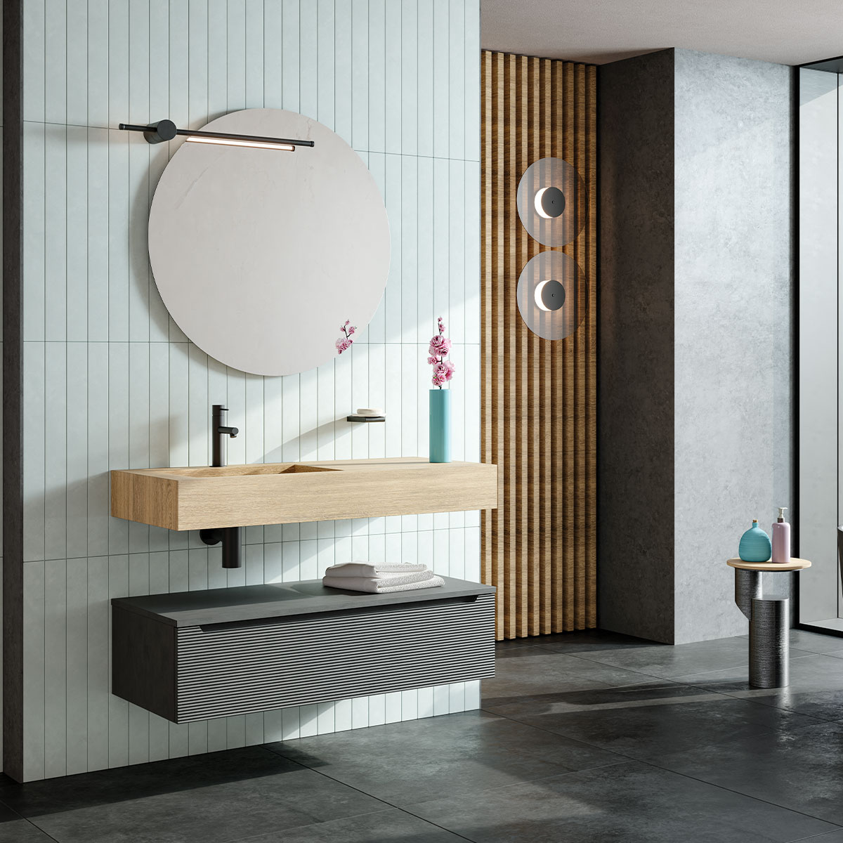 HPL 100 ROVERE NATURALE VASCA SX / GRIGIO LAVA