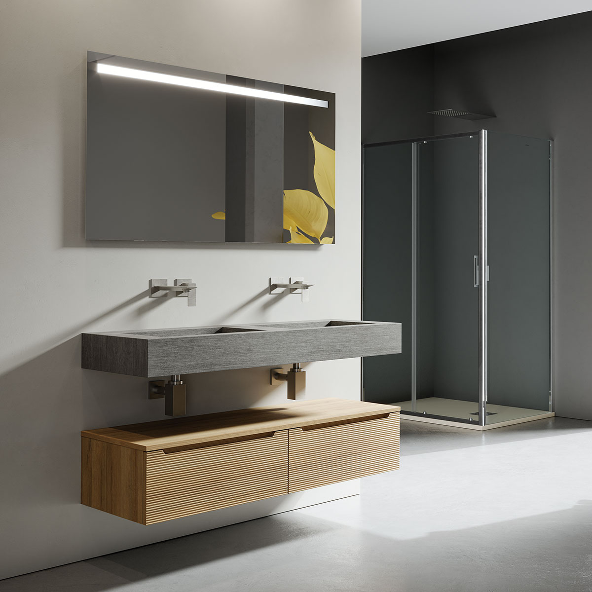 Lavabo HPL 120 a 2 vasche Rovere grigio senza fori rubinetteria (fori da praticare)