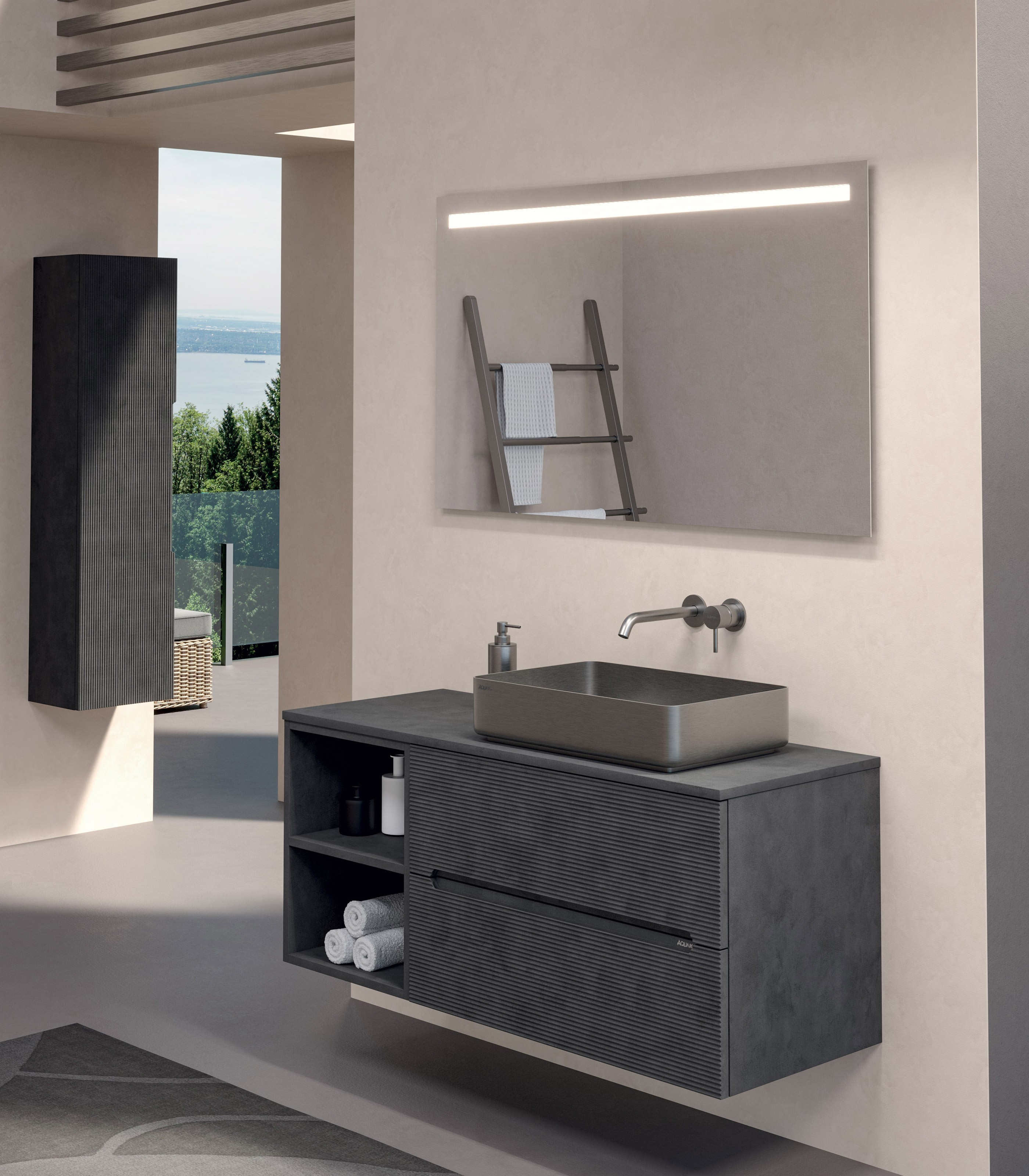 BASE PORTALAVABO A TERRA 2 CASSETTI IKON CEMENTO GRIGIO CALDO