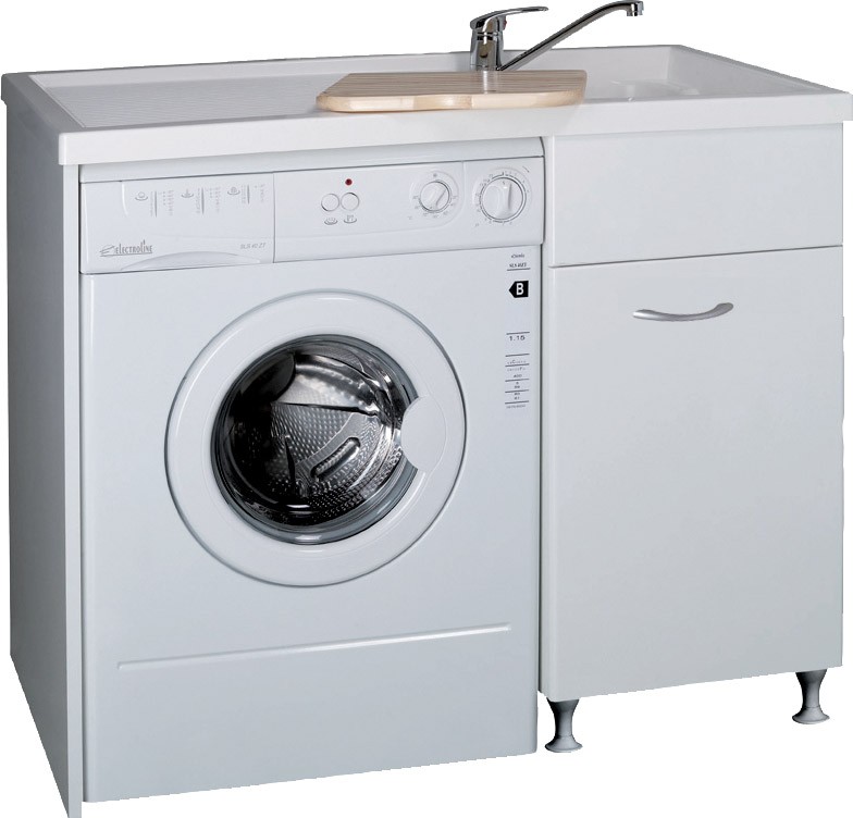 Sottolavatoio in materiale idrofugo inserimento Lavatrice completo di lavatoio in acrilico, sifone, e asse lavatoio in legno.