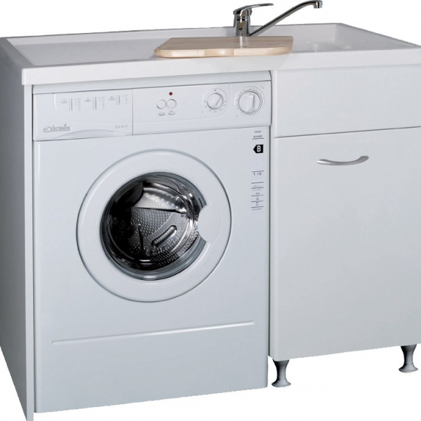Sottolavatoio in legno con lavatoio in acrilico con inserimento lavatrice