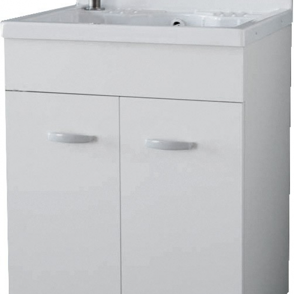 Sottolavatoio in materiale idrofugo spessore 18mm color bianco, completo di lavatoio in acrilico con strizzatoio incorporato, sifone e piletta.