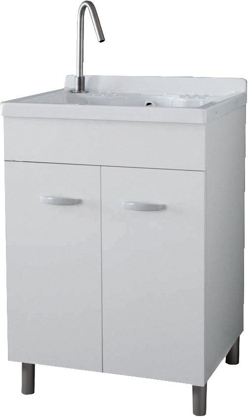 Sottolavatoio in materiale idrofugo spessore 18mm color bianco, completo di lavatoio in acrilico con strizzatoio incorporato, sifone e piletta.