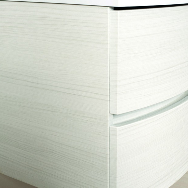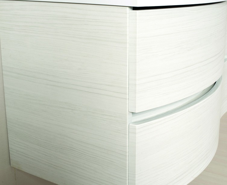 Struttura realizzata in MDF da 1,9 cm, con rivestimento in pvc finitura legno. Mobile sospeso portalavabo a 2 cassetti soft close.