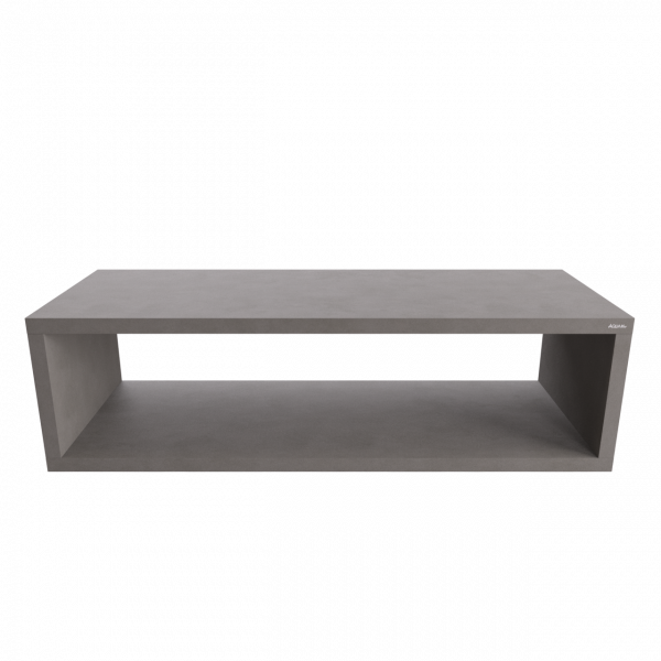 Consolle sospesa senza cassetto, struttura in agglomerato di legno con superficie in lamina melaminica in finitura legno con venatura in rilievo o cemento con texture in rilievo. Misure: L. 140 P.50 H.40