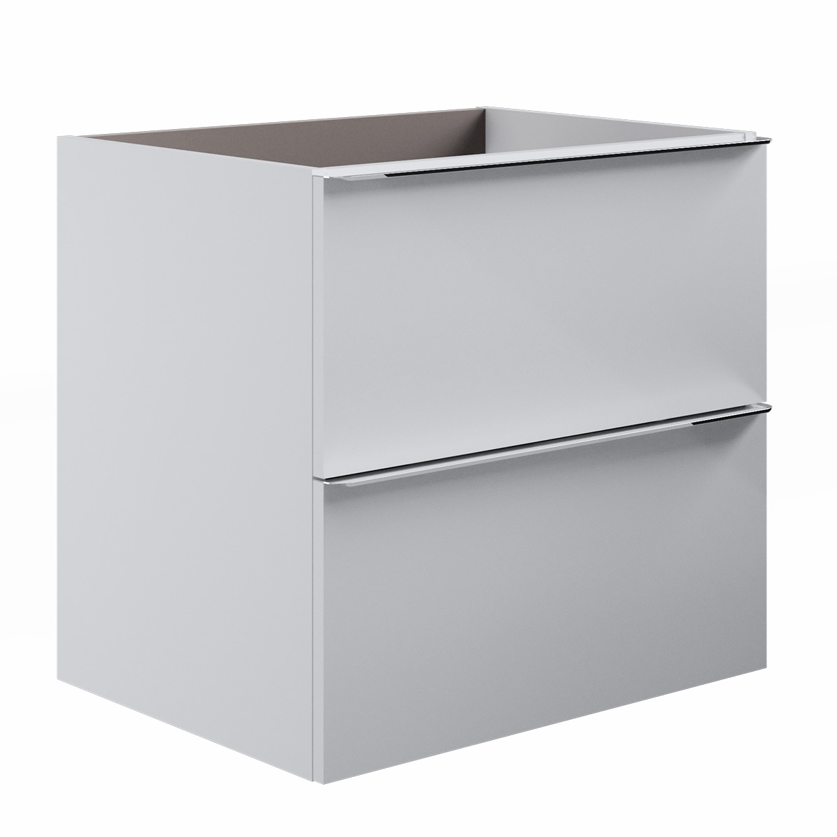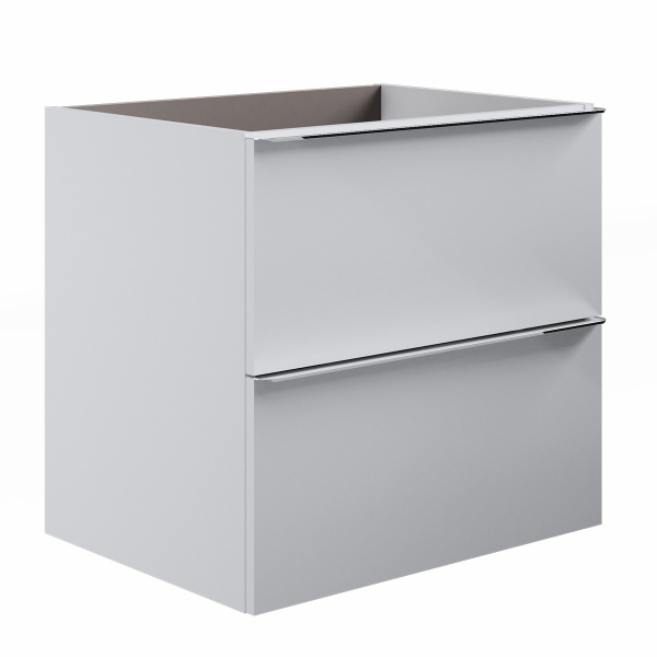 Base sospesa a 2 cassetti, laterali e frontale in MDF con maniglia in metallo cromo, con chiusura soft close.