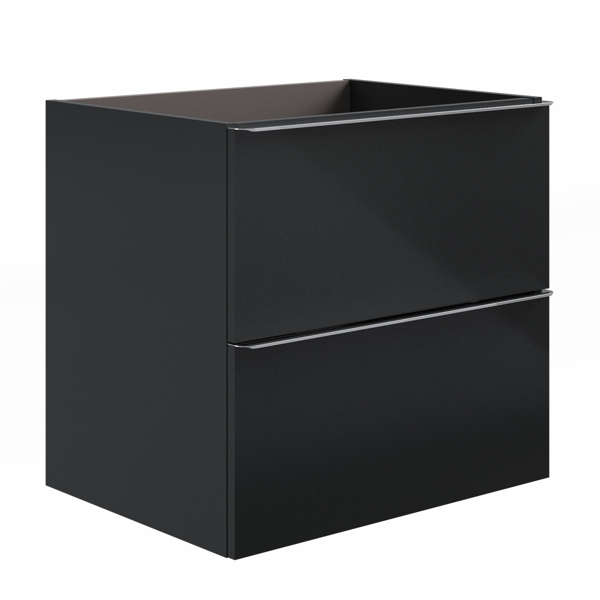 Base sospesa a 2 cassetti, laterali e frontale in MDF con maniglia in metallo cromo, con chiusura soft close.