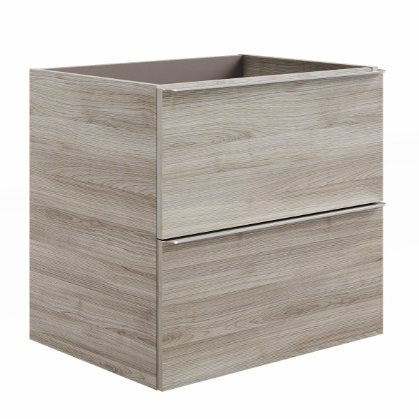 Base sospesa a 2 cassetti, laterali e frontale in MDF con maniglia in metallo cromo, con chiusura soft close.