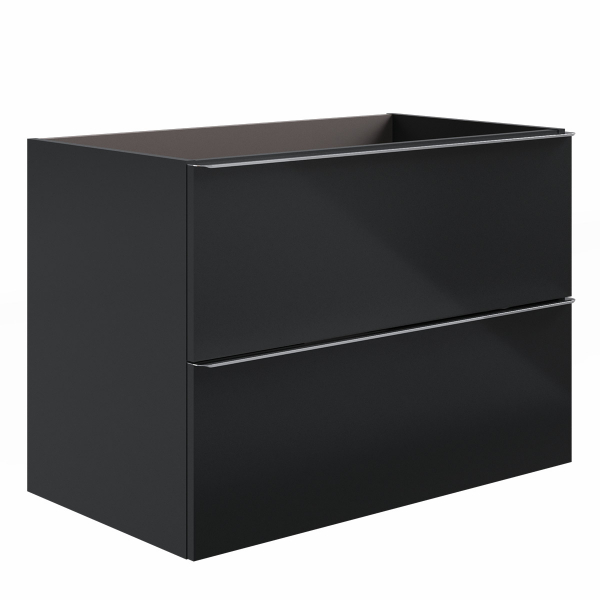 Base sospesa a 2 cassetti, laterali e frontale in MDF con maniglia in metallo cromo, con chiusura soft close.