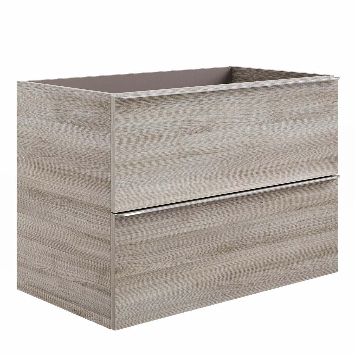 Base sospesa a 2 cassetti, laterali e frontale in MDF con maniglia in metallo cromo, con chiusura soft close.