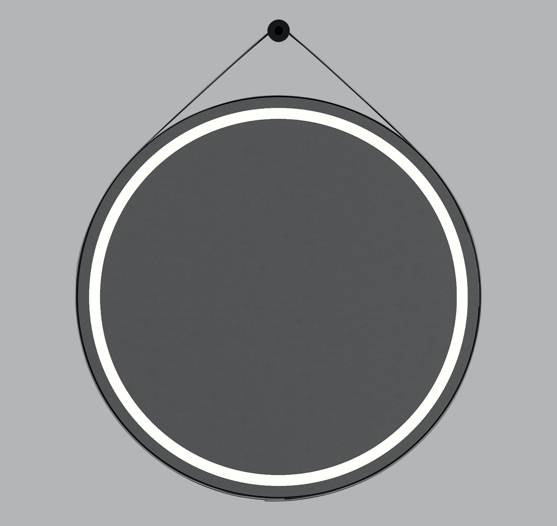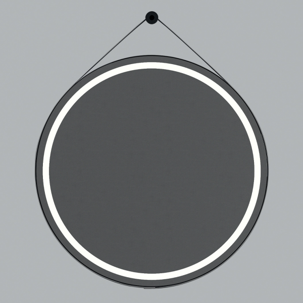 Specchio tondo con stringa in ecopelle nero opaco, retroillumato led.