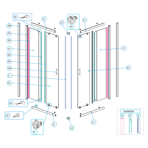 | VX | BDO502 | KIT FERMA VETRI 4 pz x BOX-PORTE EKO |