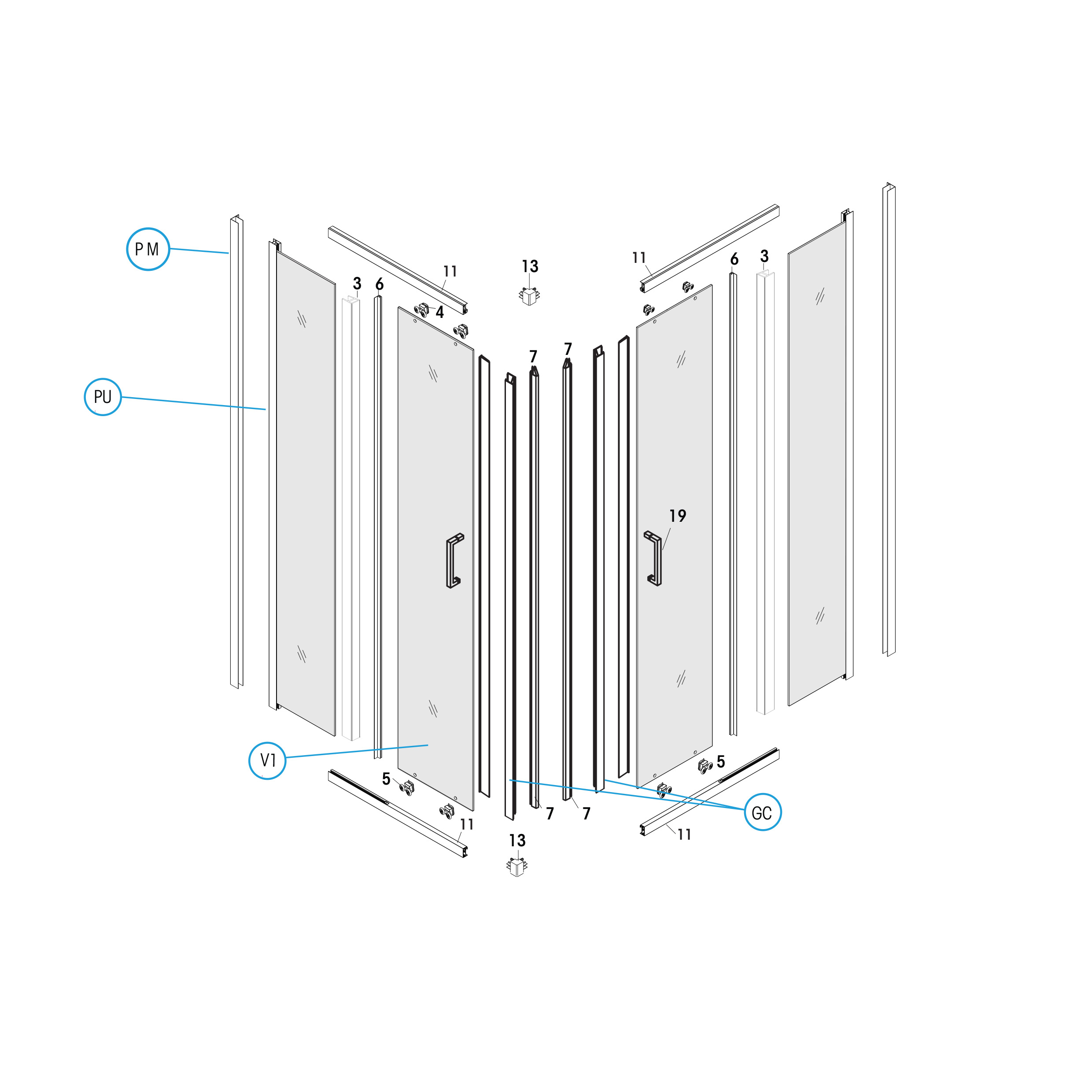 RICAMBI BOX DOCCIA A 2 LATI SLIM/SHADE