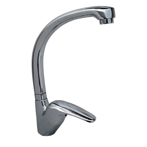 Miscelatore monocomando per lavello monoforo, con bocca busa girevole