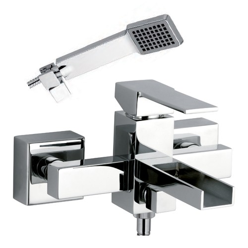Miscelatore monocomando esterno A CASCATA per vasca con doccia duplex e flessibile 150mm.