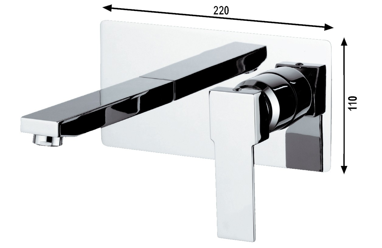 Miscelatore monocomando lavabo ad incasso, senza scarico. Bocca lunghezza 18 cm.