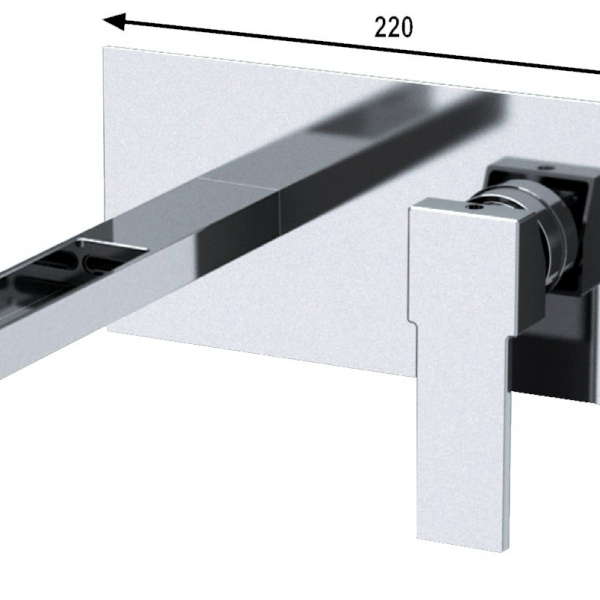Miscelatore monocomando lavabo ad incasso A CASCATA, senza scarico. Bocca lunghezza 18 cm.