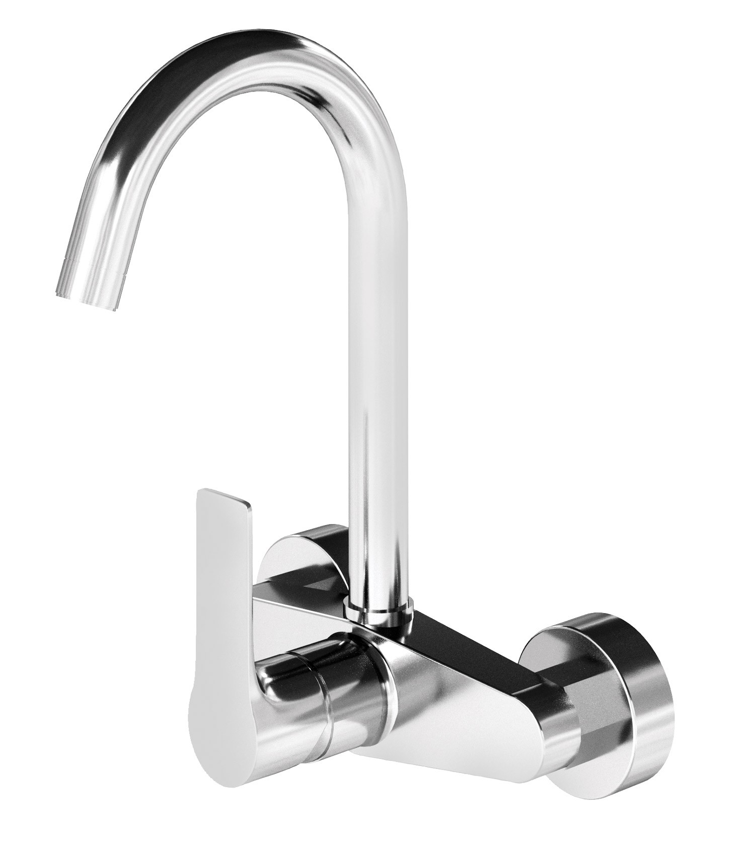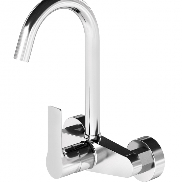 Miscelatore monocomando per lavello attacco a parete, con leva frontale e bocca alta a "U", cartuccia Ø35.