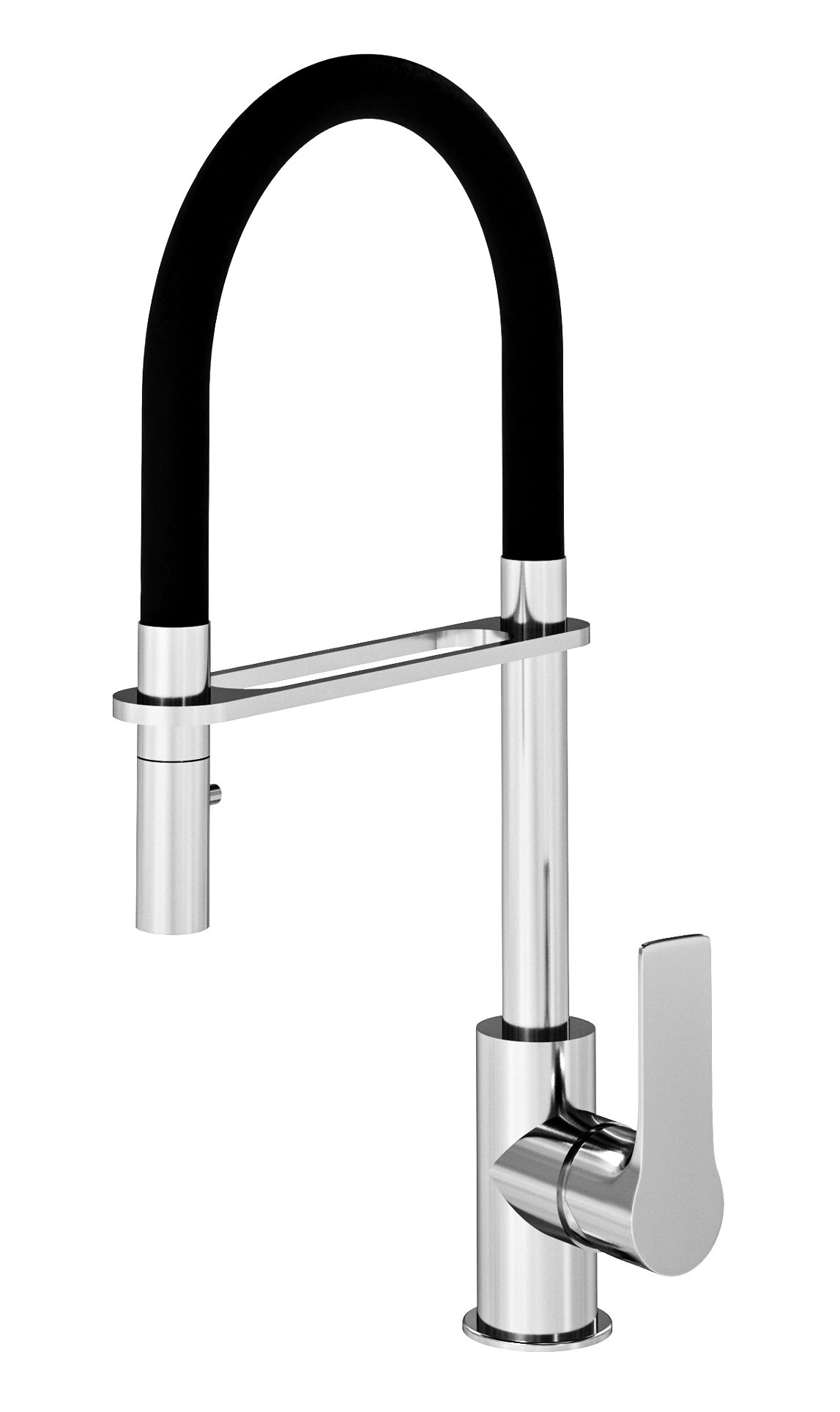 Miscelatore lavello monoforo con flessibile rivestito in tubo gomma soft-touch nero opaco.