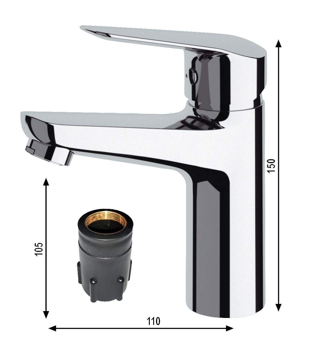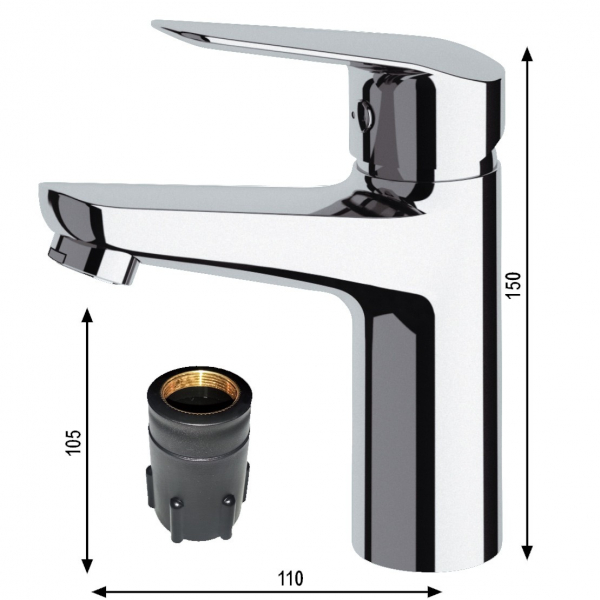 Miscelatore monocomando lavabo monoforo, con scarico 1"1/4 e flessibili.