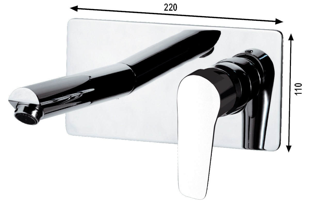 Miscelatore monocomando lavabo ad incasso, senza scarico. Bocca lunghezza 18 cm.