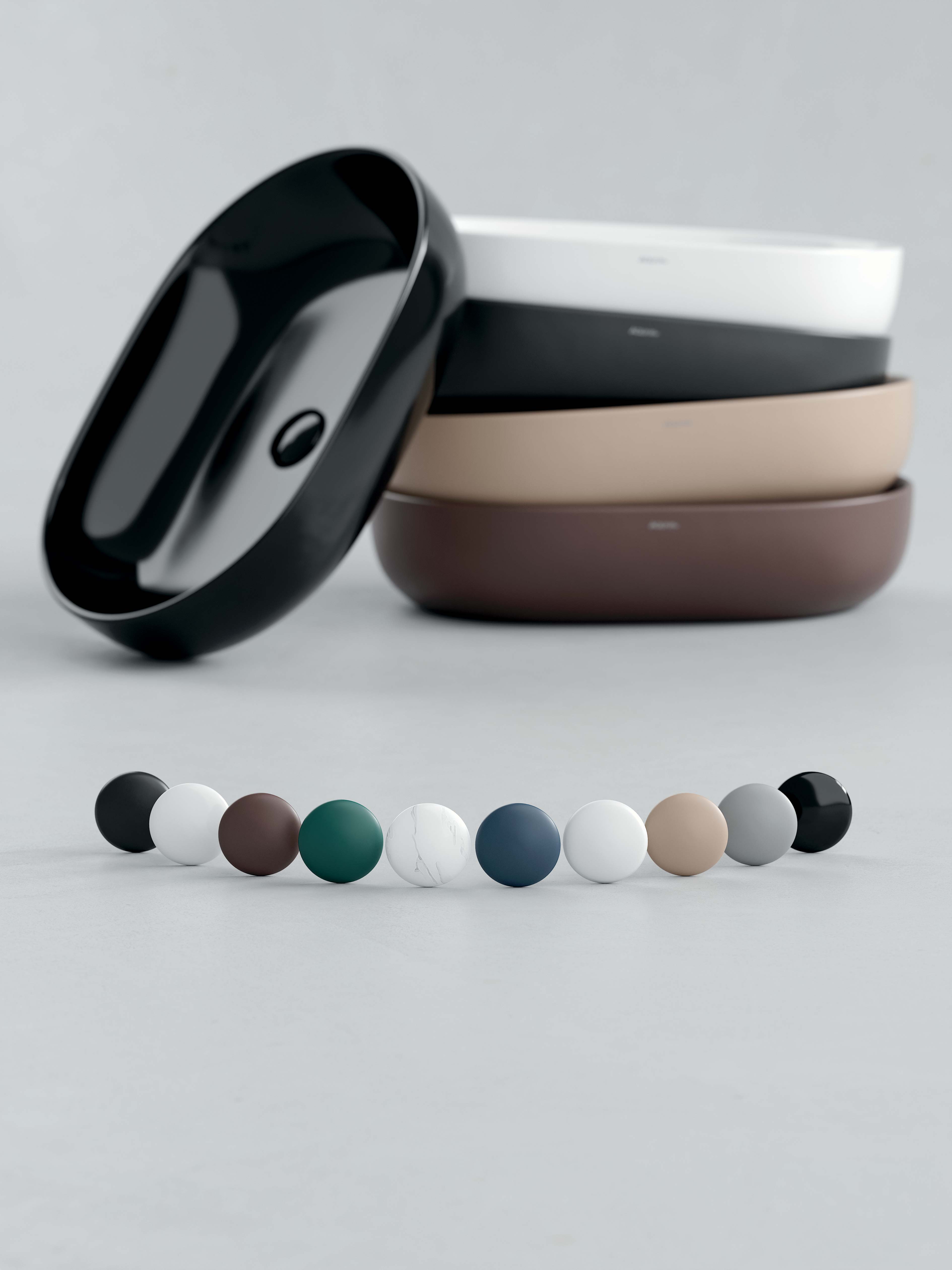 Piletta senza troppo pieno da 1"1/4 con meccanismo a pressione PUSH-UP con tappo coprente in ceramica, in 7 colorazioni.