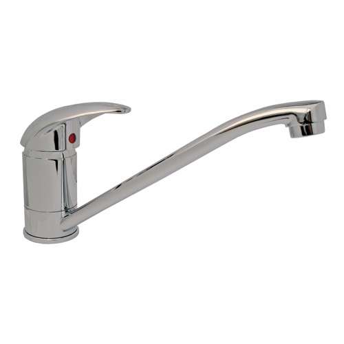 Miscelatore monocomando per lavello monoforo, con bocca bassa girevole