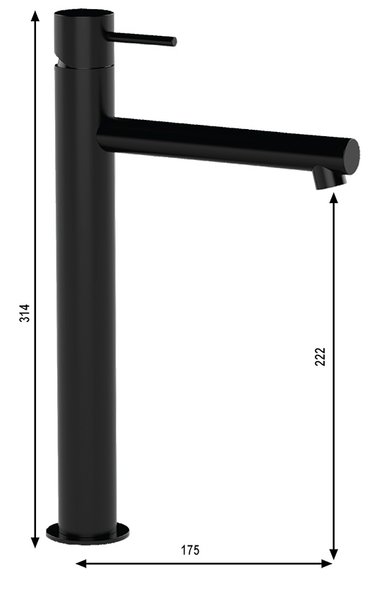 Miscelatore monocomando senza scarico, bocca lunghezza 18cm.