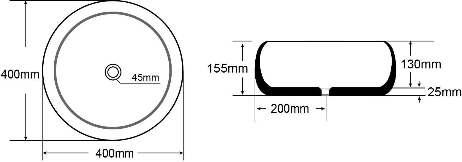 | Dimensioni lavabo | L. 400 P. 400 H. 155 |