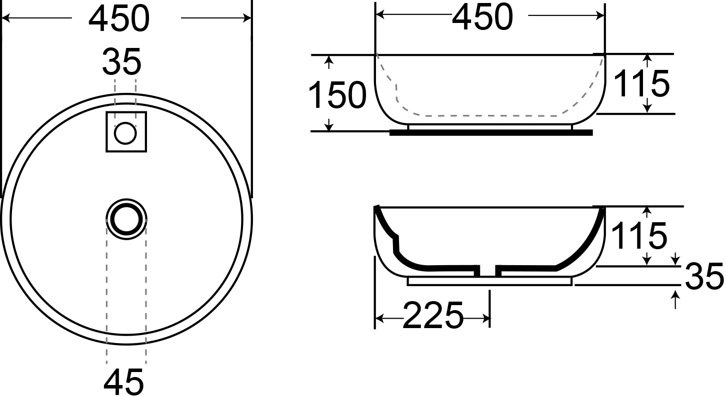 | Dimensioni lavabo | L. 450 P. 450 H. 150 |