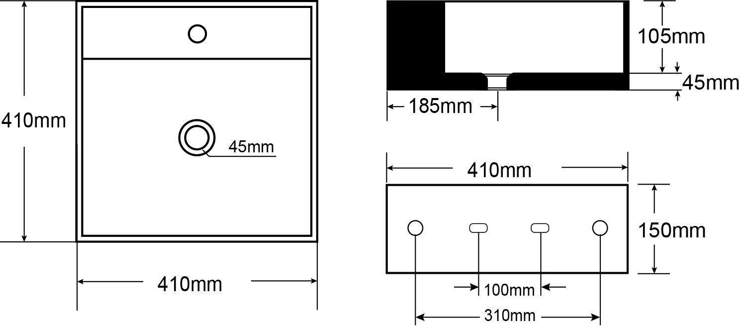 | Dimensioni lavabo | L. 410 P. 410 H. 150 |
