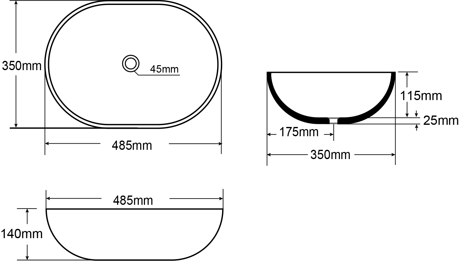| Dimensioni lavabo | L. 485 P. 350 H. 140 |