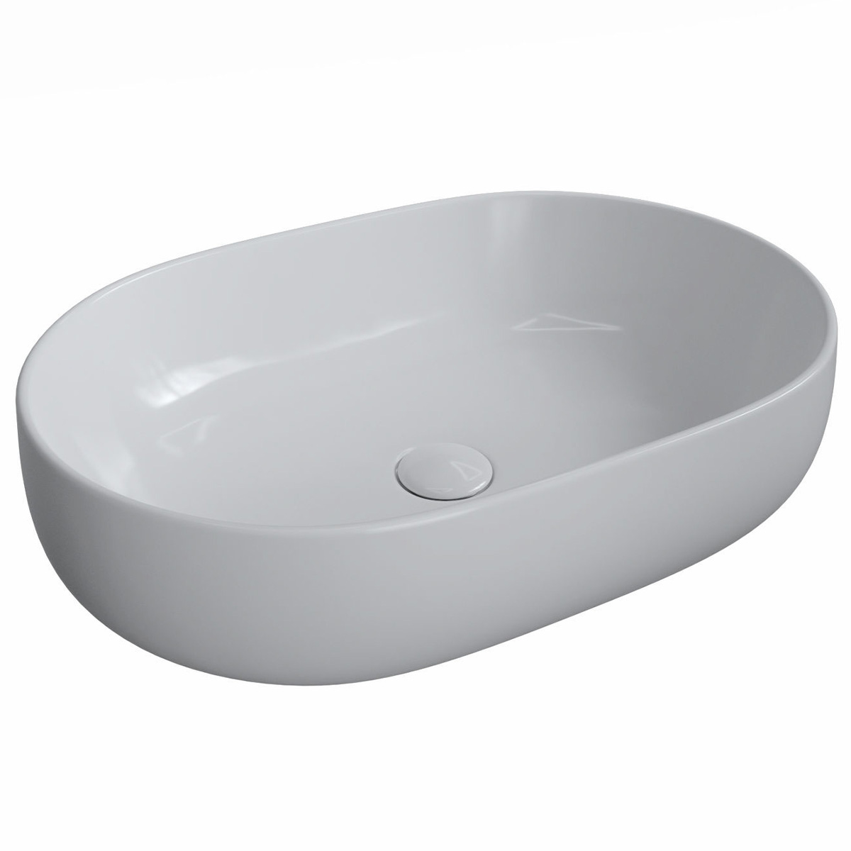 Lavabo in ceramica ad appoggio senza foro rubinetteria, senzatroppo pieno e senza piletta.