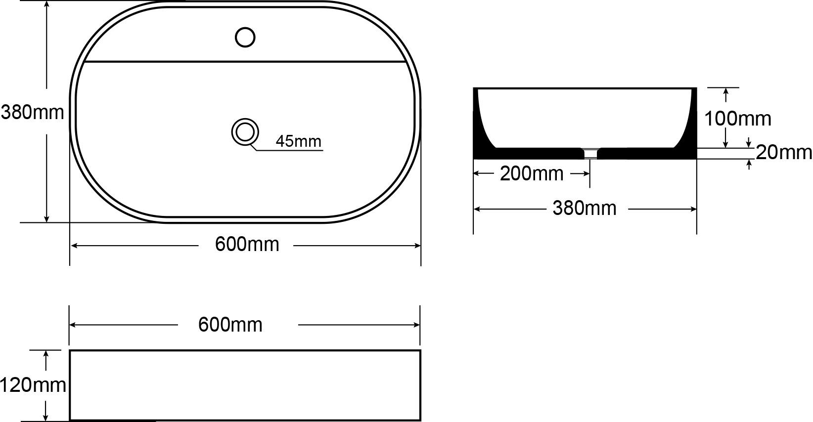 | Dimensioni lavabo | L. 600 P. 380 H. 120 |