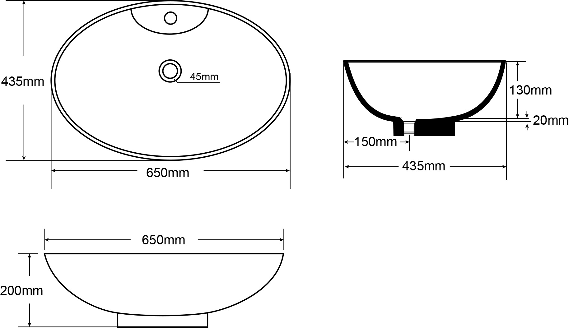 | Dimensioni lavabo | L. 650 P. 435 H. 200 |