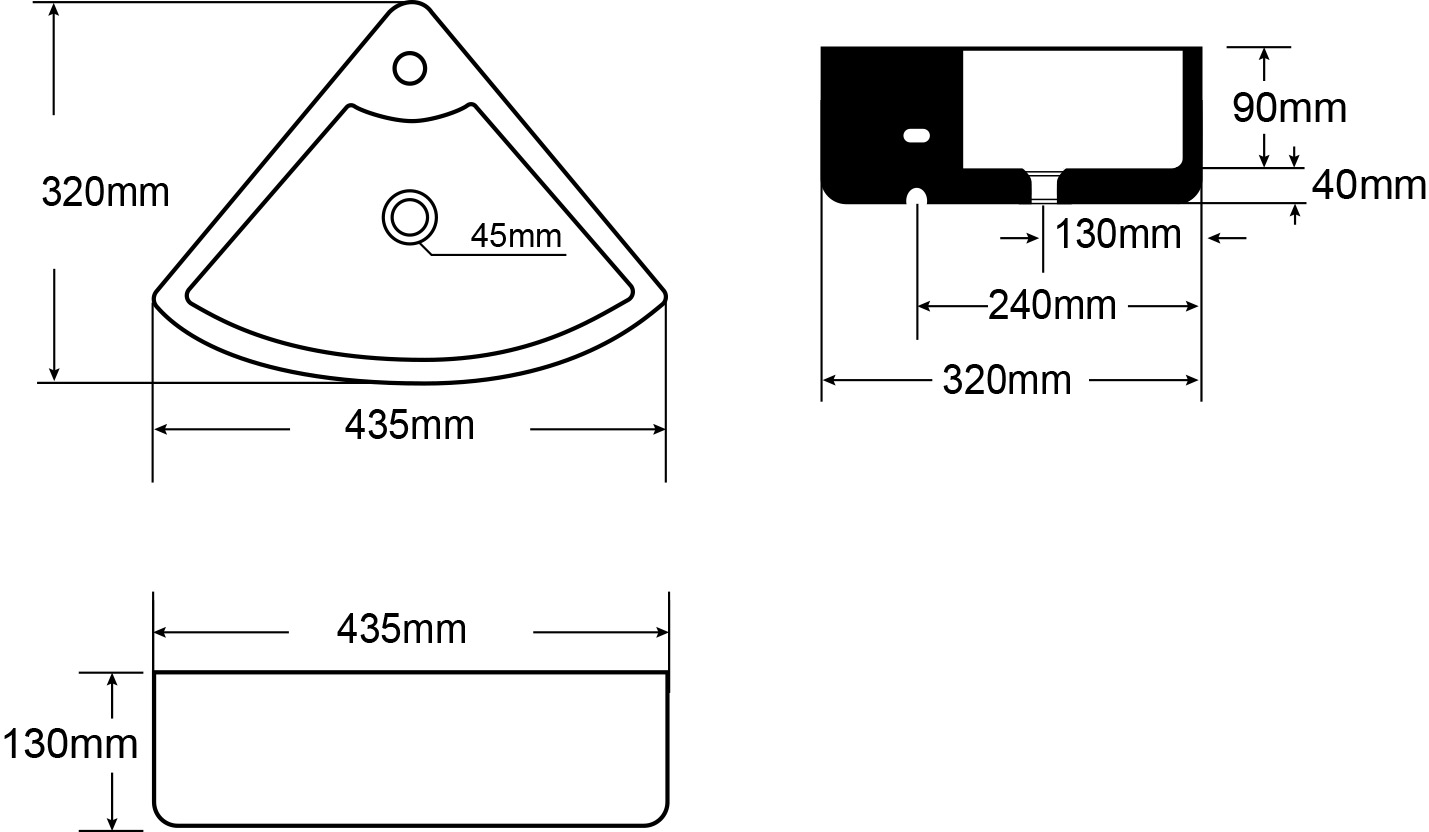 | Dimensioni lavabo | L. 435 P. 320 H. 130 |