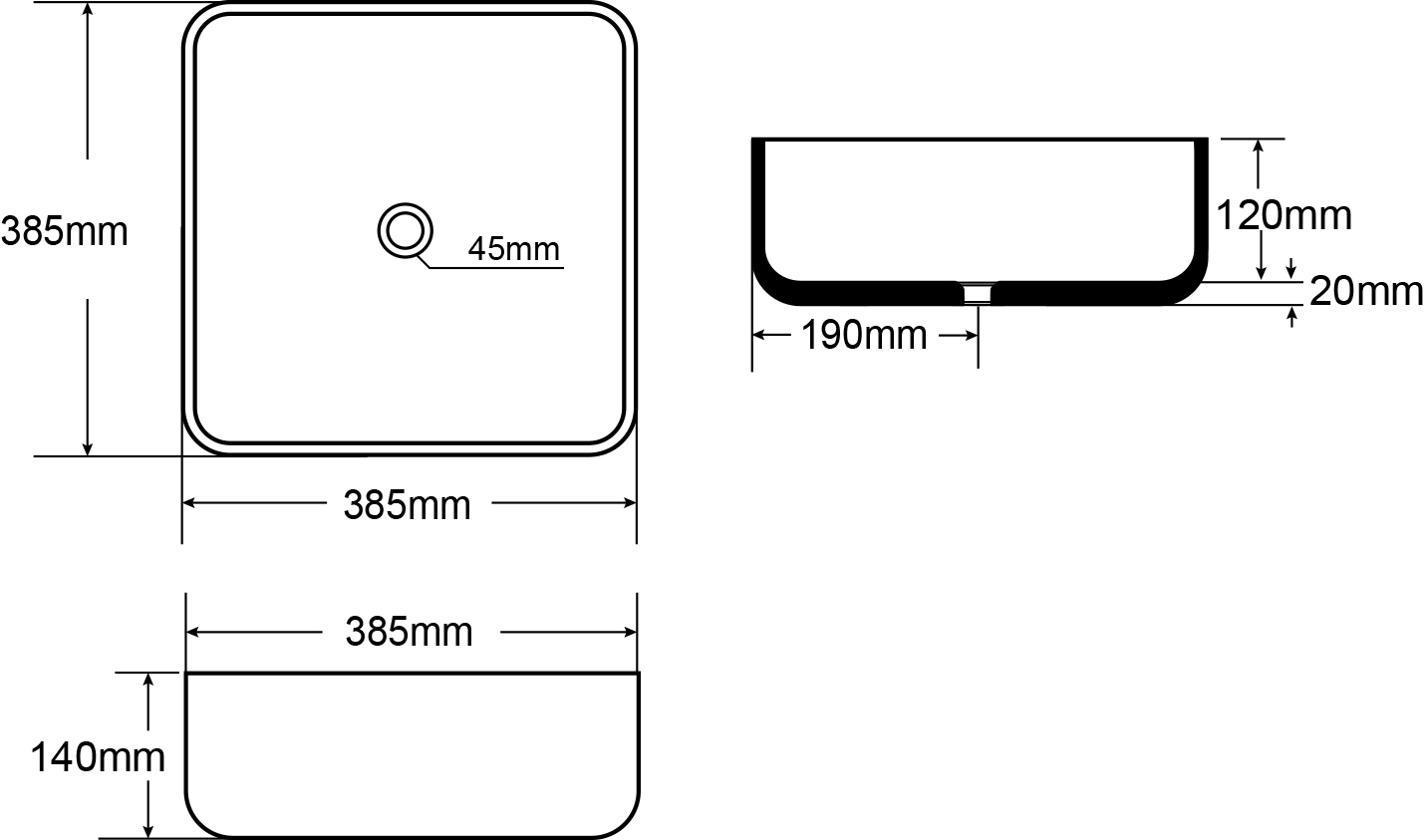 | Dimensioni lavabo | L. 385 P. 385 H. 140 |