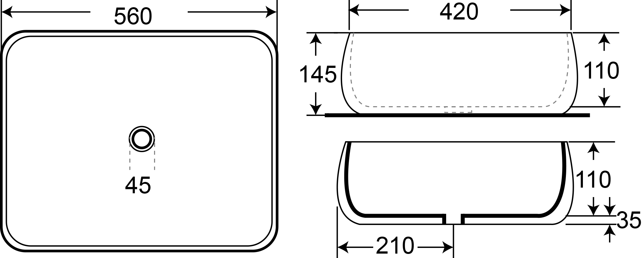 | Dimensioni lavabo | L. 560 P. 420 H. 145 |