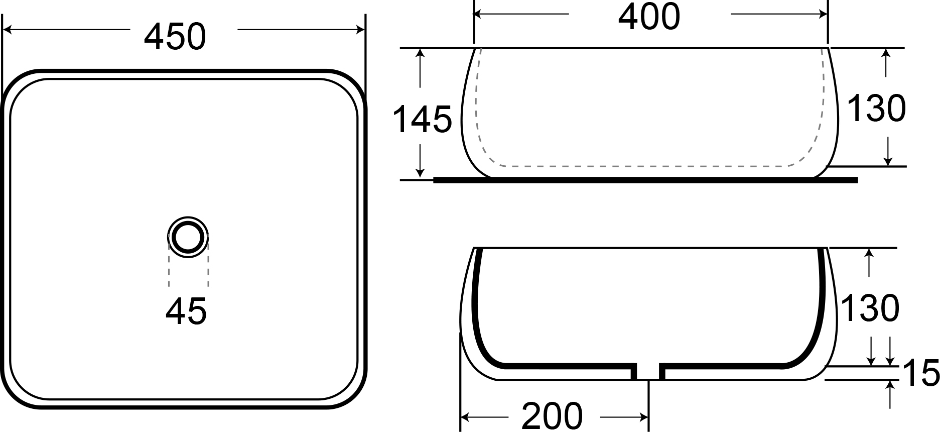 | Dimensioni lavabo | L. 450 P. 400 H. 145 |