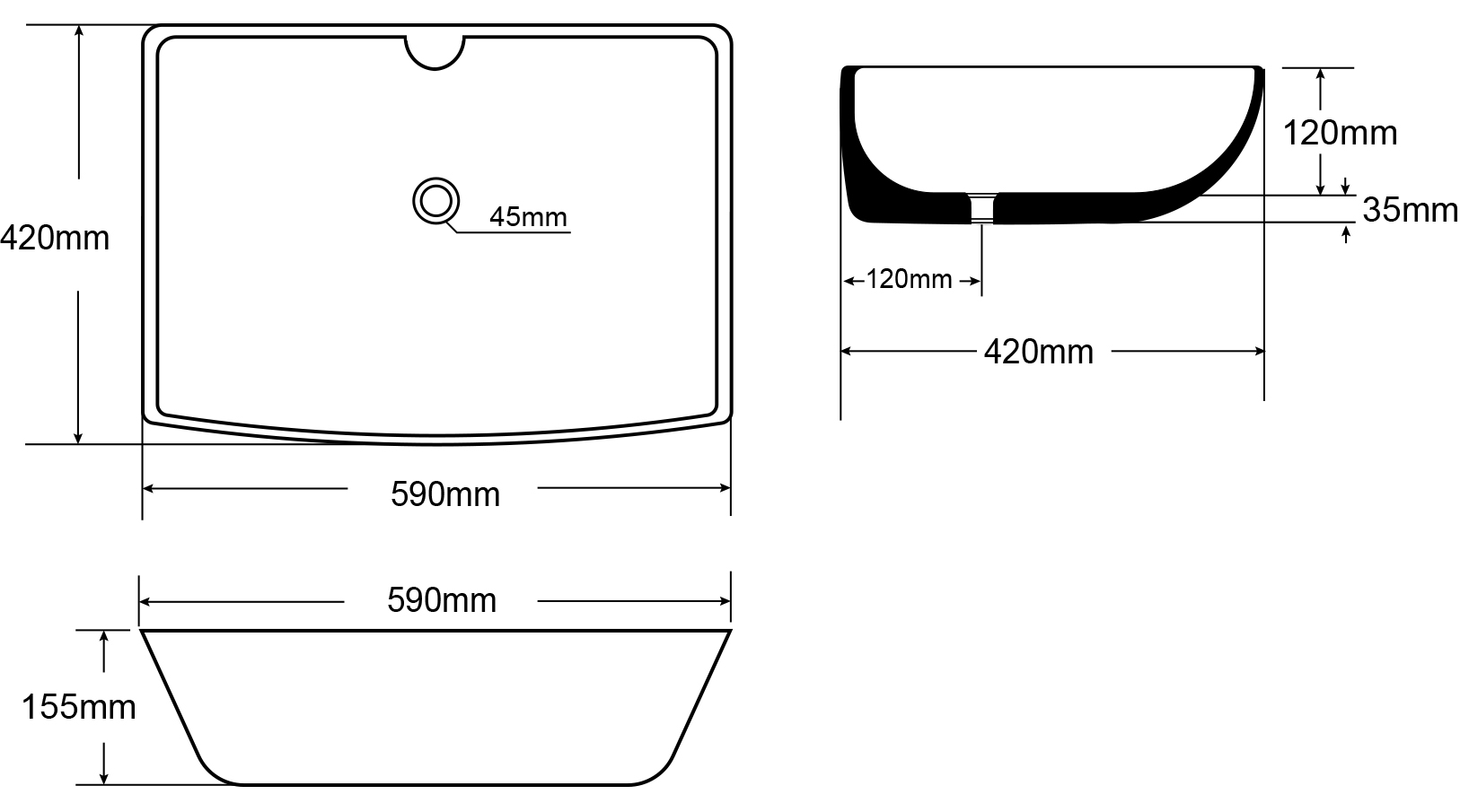 | Dimensioni lavabo | L. 590 P. 420 H. 155 |