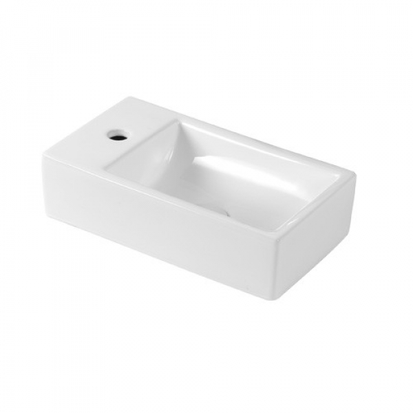 Lavabo in ceramica ad appoggio senza foro rubinetteria, senzatroppo pieno e senza piletta.