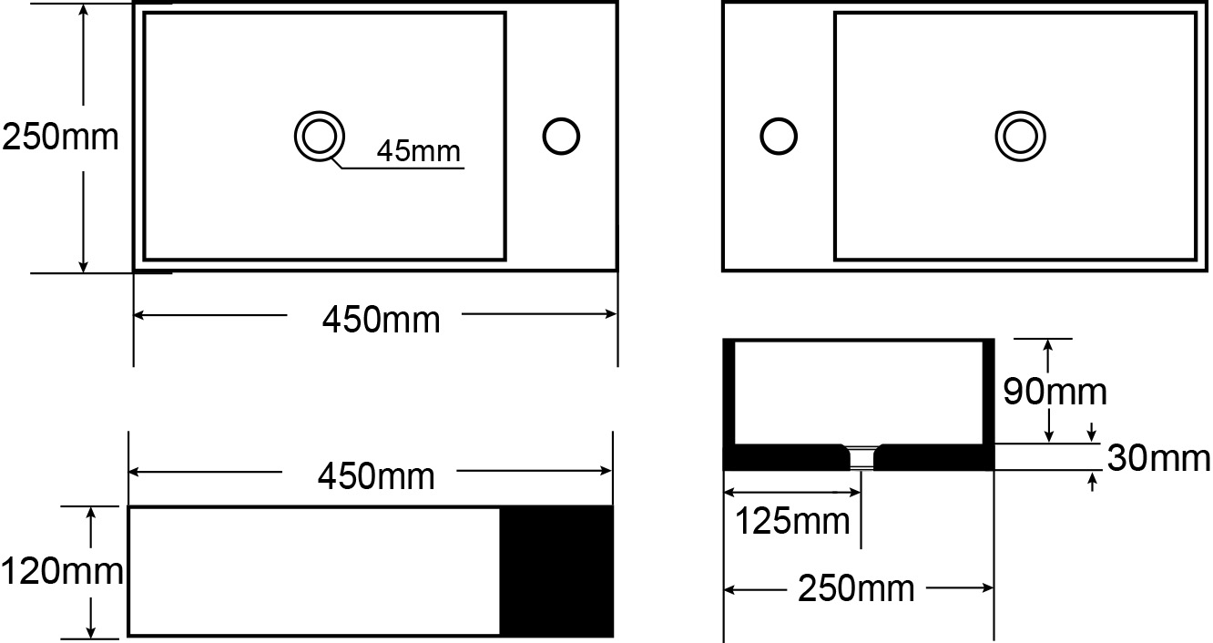 | Dimensioni lavabo | L. 450 P. 250 H. 120 |