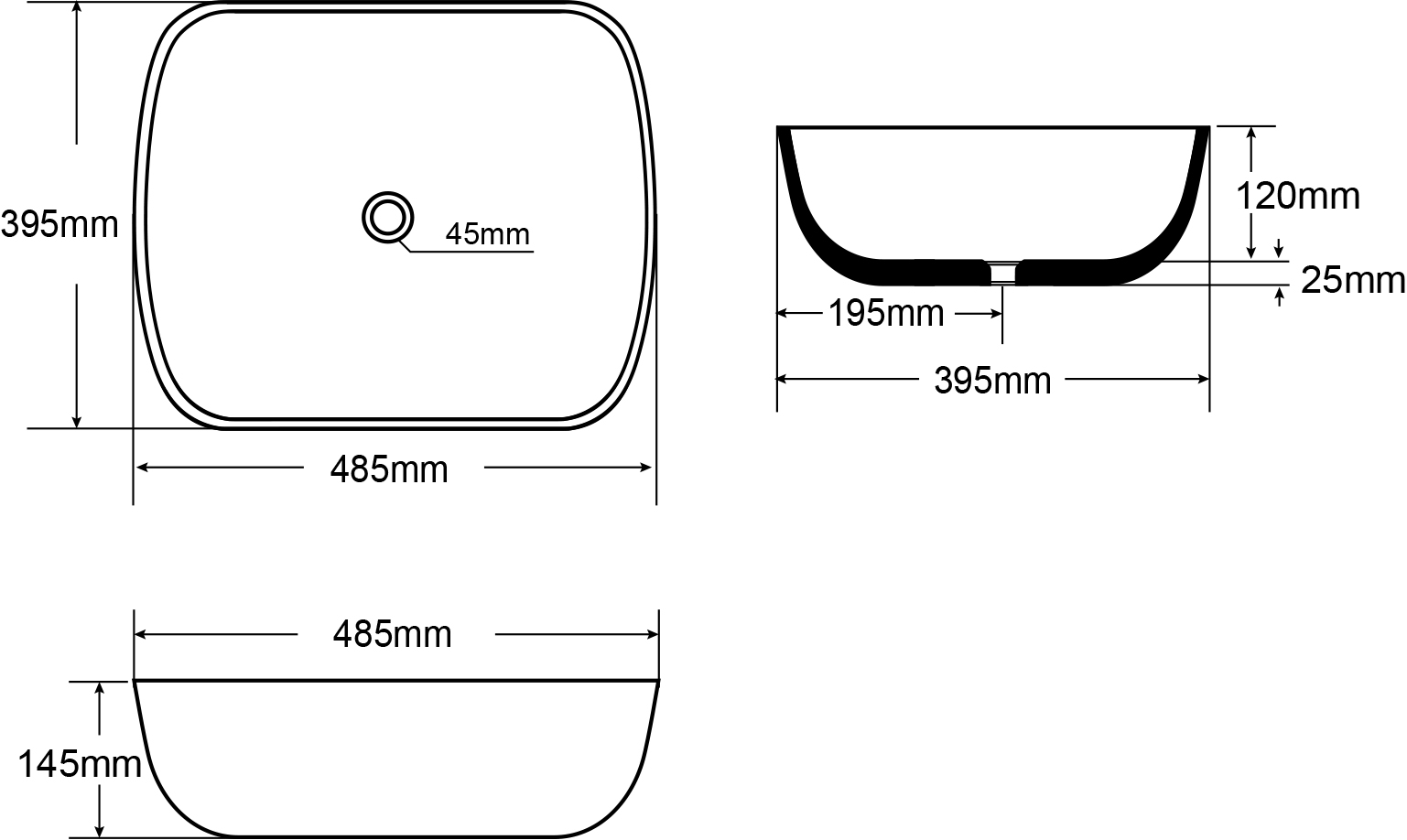 Dimensioni lavabo L. 485 P. 395 H. 145