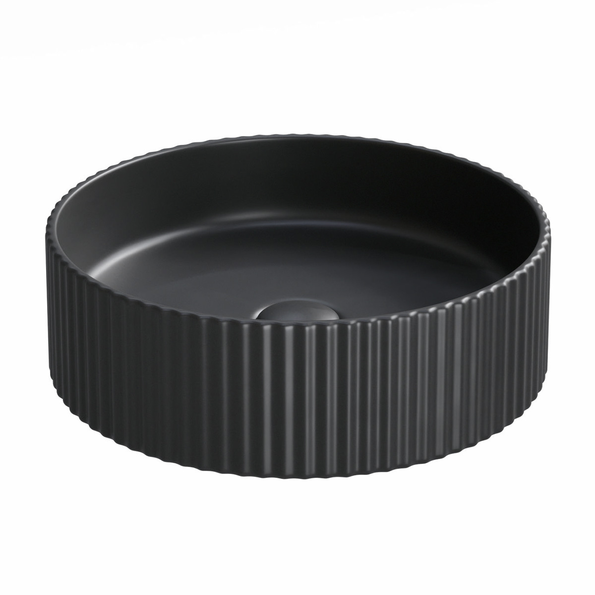 Lavabo in ceramica ad appoggio senza foro rubinetteria, senzatroppo pieno e senza piletta.