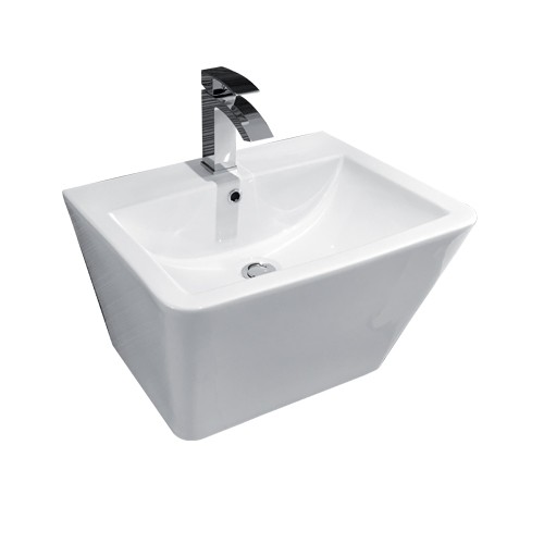 Lavabo sospeso 56cm con semicolonna integrata, completo di kit di fissaggio nell' imballo.