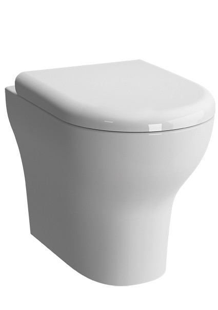 Vaso per cassetta alta scarico multi, installazione a terra filo parete, senza sedile e senza curva.